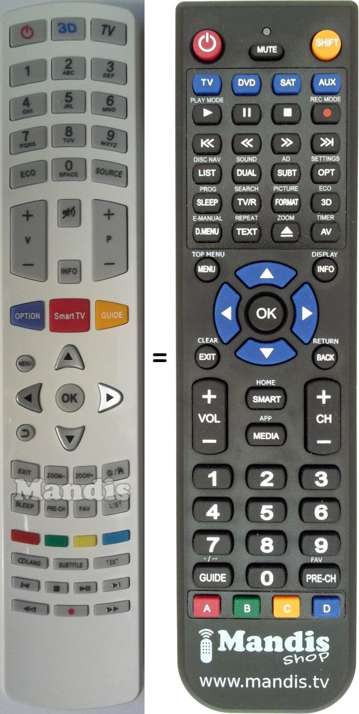Below, we will show you the correspondence between each button on the original remote control and the button that performs the same function on the replacement remote control. In some cases, you may need to press the SHIFT key before pressing another button to perform certain actions. These additional functions are often not widely used and are included to facilitate understanding of the replacement remote control, or because the original remote control has more buttons than its equivalent.