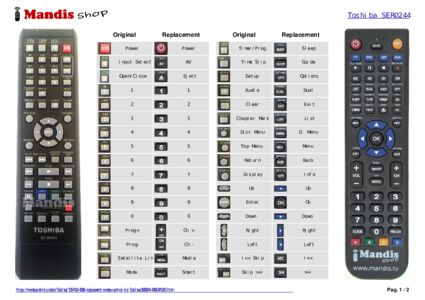Below, we will show you the correspondence between each button on the original remote control and the button that performs the same function on the replacement remote control. In some cases, you may need to press the SHIFT key before pressing another button to perform certain actions. These additional functions are often not widely used and are included to facilitate understanding of the replacement remote control, or because the original remote control has more buttons than its equivalent.