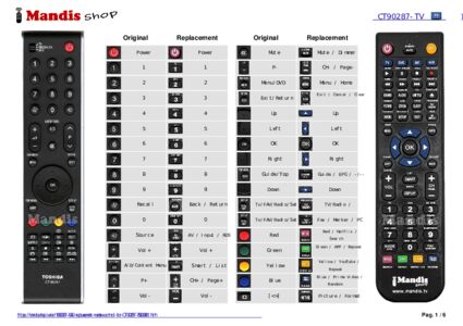 This remote control fully replaces your CT-90287 [TV+REGZA] and offers all the functions of the original.