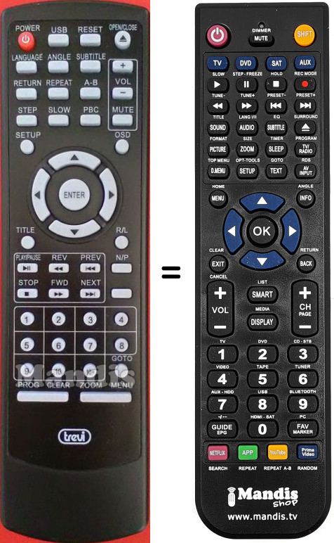 Remote control to replace the original remote DXV3530USB and all its functions.