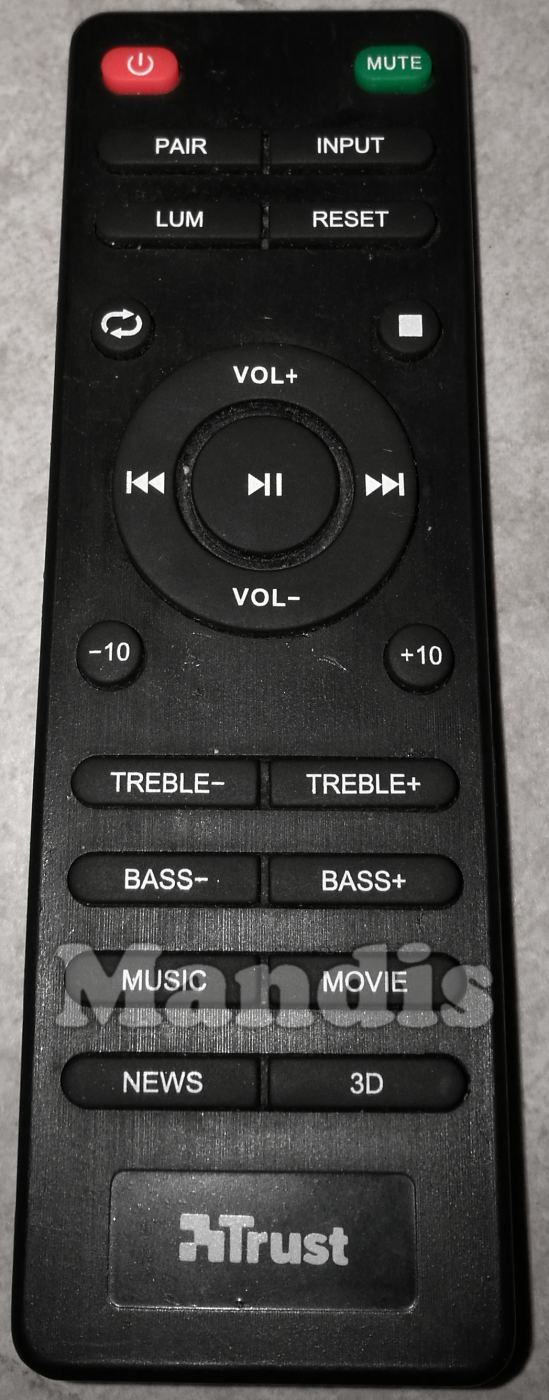 original remote control Trust001 used for soundbar for the brand Trust. This is an original remote control.