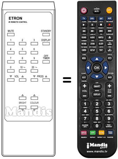 Remote control to replace the original and all its functions.