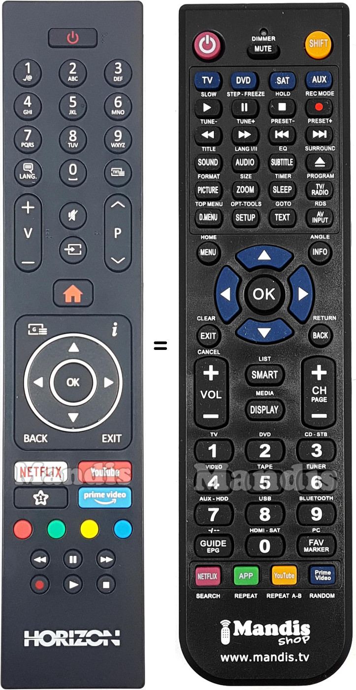 Below, we will show you the correspondence between each button on the original remote control and the button that performs the same function on the replacement remote control. In some cases, you may need to press the SHIFT key before pressing another button to perform certain actions. These additional functions are often not widely used and are included to facilitate understanding of the replacement remote control, or because the original remote control has more buttons than its equivalent.