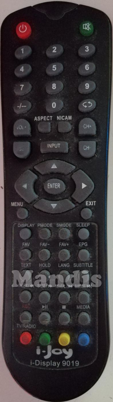 original remote control I-DISPLAY9019 used for televisions for the brand i-Joy. This is an original remote control.